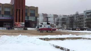 Взлет вертолета с площади г.Тосно 19 января 2012